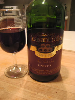 After a long week and a nice dinner, I took to the couch to relax. As I started to fall asleep Paul puts in front of me a glass of Pleasant Valley Port. We are not big Port drinkers, but are really beginning to enjoy it. Being that I don’t normally like raisins, I really enjoy the raisiny nose and taste. (Maybe I should revisit that little red box someday)