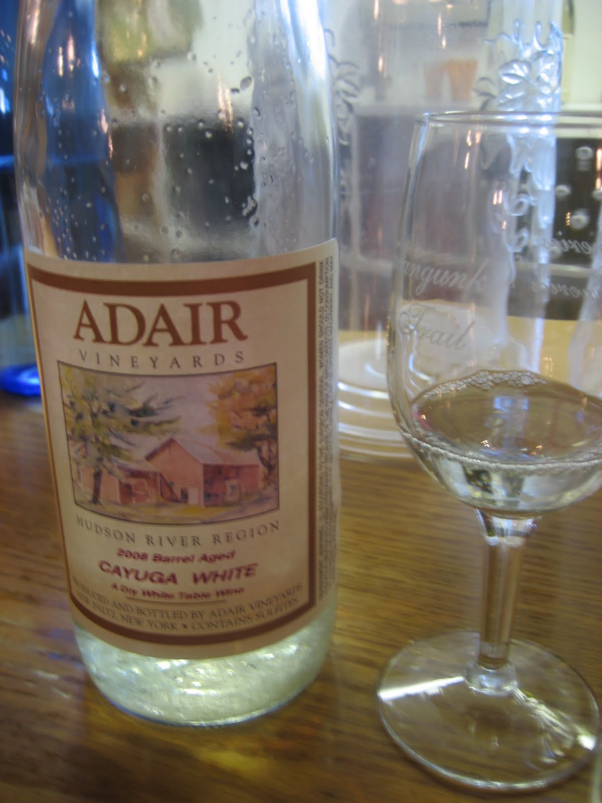 I tasted this 2008 Cayuga White while wine tasting last week at Adair Vineyards. I don’t usually like wine made with Cayuga grapes because it taste to grapey. That wasn’t the case here.