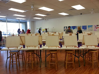 We had our choice of wine or beer and then took our seats. We went over general instructions then went and filled our palates with the primary colors. There was a row of additional colors we could include, so I included pink and purple, my two favorite colors.
