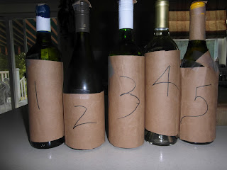 I brown bagged the wine and since it had cooled off we sat outside. Each person was given a sheet of paper that was labeled 1-5 and each number you had to circle what region you thought the wine was from. The regions being Chile, California, France and New Zealand. There was also room for tasting notes. Here’s what was said about the wines