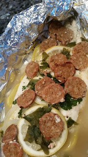 The other day I came home with Flounder and Paul asked me how I was going to cook it. I thought about sauteing it with Panko in lemon, butter and wine. Kind of like my mom use to make (minus the wine). He didn’t like that idea to much and had a different idea of what his dinner was going to be that night and it involved foil and the grill.