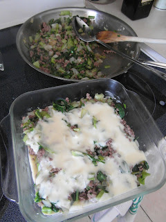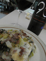 The timer went off and that meant it was time for my Asian Lasagna and the Cabernet Sauvignon from Mendoza.