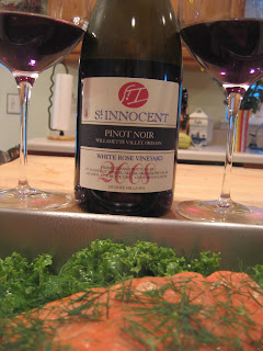 This St. Innocent (just like me:) Willamette Valley 2008 White Rose Pinot Noir might have been a tad to rich for the Wild Alaskan King Salmon we cooked, but never the less it was might tasty. Yes both the salmon and Pinot Noir.
